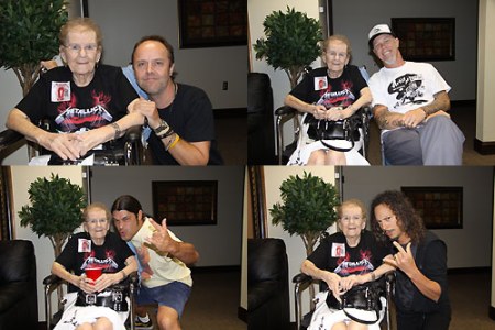 Новости Metallica05-10-2009 Песня для 85-летней фанатки Metallica.Маргарет Приб, 85-летняя фанатка Metallica, которая "стала сенсацией" после выпуска её рассказа в St. Petersburg Times, была приглашена за кулисы для встречи с группой 3 октября на концерте в Тампе. Каждый участник Metallica провел некоторое время с ней, делясь историями о её любимом альбоме - "S&M". Гитарист Кирк Хэмметт также отметил, что она теперь составляет конкуренцию его матери! Кроме того, гитарист/вокалист Джеймс Хэтфилд посвятил песню "Nothing Else Matters" Маргарет на концерте, перед 18000 человек. "Фанат Metallica номер один!" говорил Ларс Ульрих о Маргарет, сообщает TampaBay.com. После встречи Маргарет сказала: «Они просто хотели уделить мне внимание». Группа подписала её копию альбома "Death Magnetic" и даже подарила ей футболку. Когда она появилась на сцене, фэны взорвались аплодисментами. ← к содержанию Автор: Ironhead | Комментариев: 35 | Обсудить → |