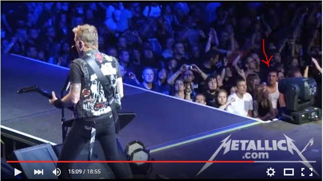 Довольно часто смотрю живые выступления группы на ютубе и вот уже третий год замечаю одного и того парня на концертах. В основном, на блатных местах, прям перед сценой. Здоровенький такой латинос. Постоянно попадает в кадр. Интересно, что же за такой яростный фанат, практически на каждом концерте, где бы группа не выступала, в одной и той же белой майке (в основном). Я особо не мониторил, с какого года он начал "светиться" так ярко на выступлениях Металлики, но факт все же остается фактом. Как минимум, начиная с 2006 года, его можно заметить практически на любом концерте. Просто интересно, может кто еще об этом задумывался